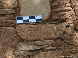 Ojos del Dios Tláloc en el paramento del Templo principal de Tehualco © Miguel Pérez Negrete INAH