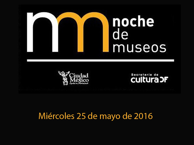 “Noche de Museos” es una iniciativa cultural organizada por la Secretaría de Cultura del Distrito Federal que se lleva a cabo el último miércoles de cada mes en varios museos participantes del Centro Histórico de la ciudad de México, los cuales para esta ocasión, abren sus puertas al público en un horario nocturno de 19:00 a 22:00 hrs para ofrecer actividades diversas como visitas guiadas, conciertos, charlas, visitas dramatizadas, presentación de libros, inauguración de exposición, proyecciones cinematográficas, declamación de poemas, performances, etc.