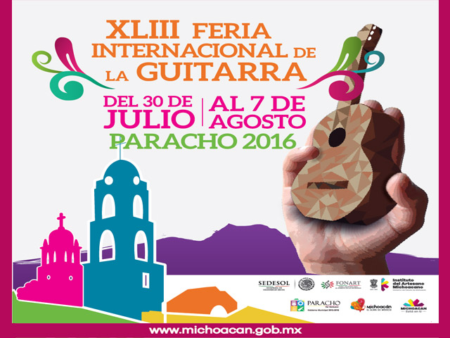 La XLIII Feria Nacional de la Guitarra en Paracho, Michoacán, se celebrará del del 31 de julio al 5 de agosto de 2016 en las instalaciones del Centro para la Investigación y Desarrollo de la Guitarra, A.C. (CIDEG), en Paracho de Verduzco.