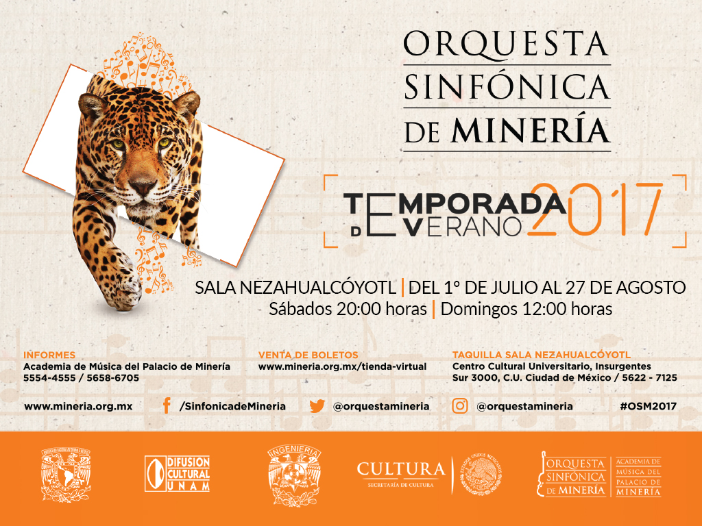 Aún estás a tiempo de disfrutar de la Orquesta Sinfónica de Minería en la temporada de verano 2017 que se llevará a cabo en el Centro Cultural Universitario en la Sala Nezahualcóyotl los fines de semana de julio y agosto.
