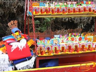 Artesanías de madera y textiles en una Tinaja de Xochimilco