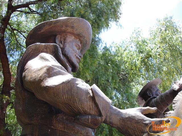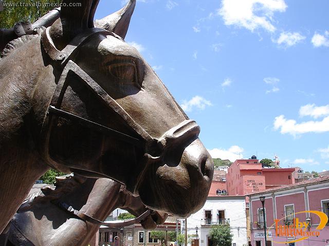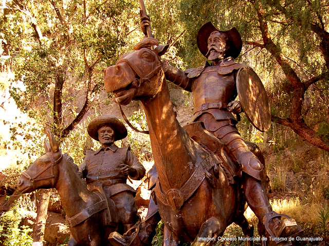 En la Plaza Allende, a un lado del Teatro Cervantes, se pueden apreciar dos estatuas colocadas en los años 70’s durante la internacionalización del Festival Cervantino.